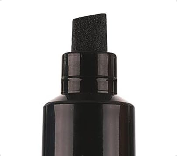 Rotulador de tiza líquida con punta biselada para trazos anchos y rotulación visible.